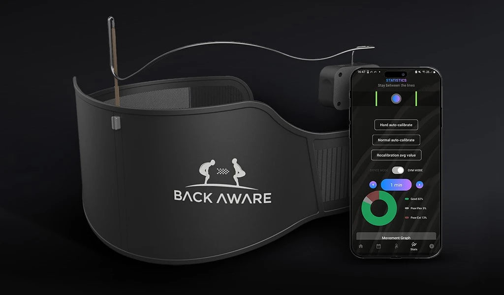 BackAware is a wearable technology designed to provide real-time feedback on your back posture. Paired with our app, it offers follow-along videos that help you monitor and improve your back alignment. Additionally, the app features an option to view yourself on screen and send us your recordings for a professional review of your form.